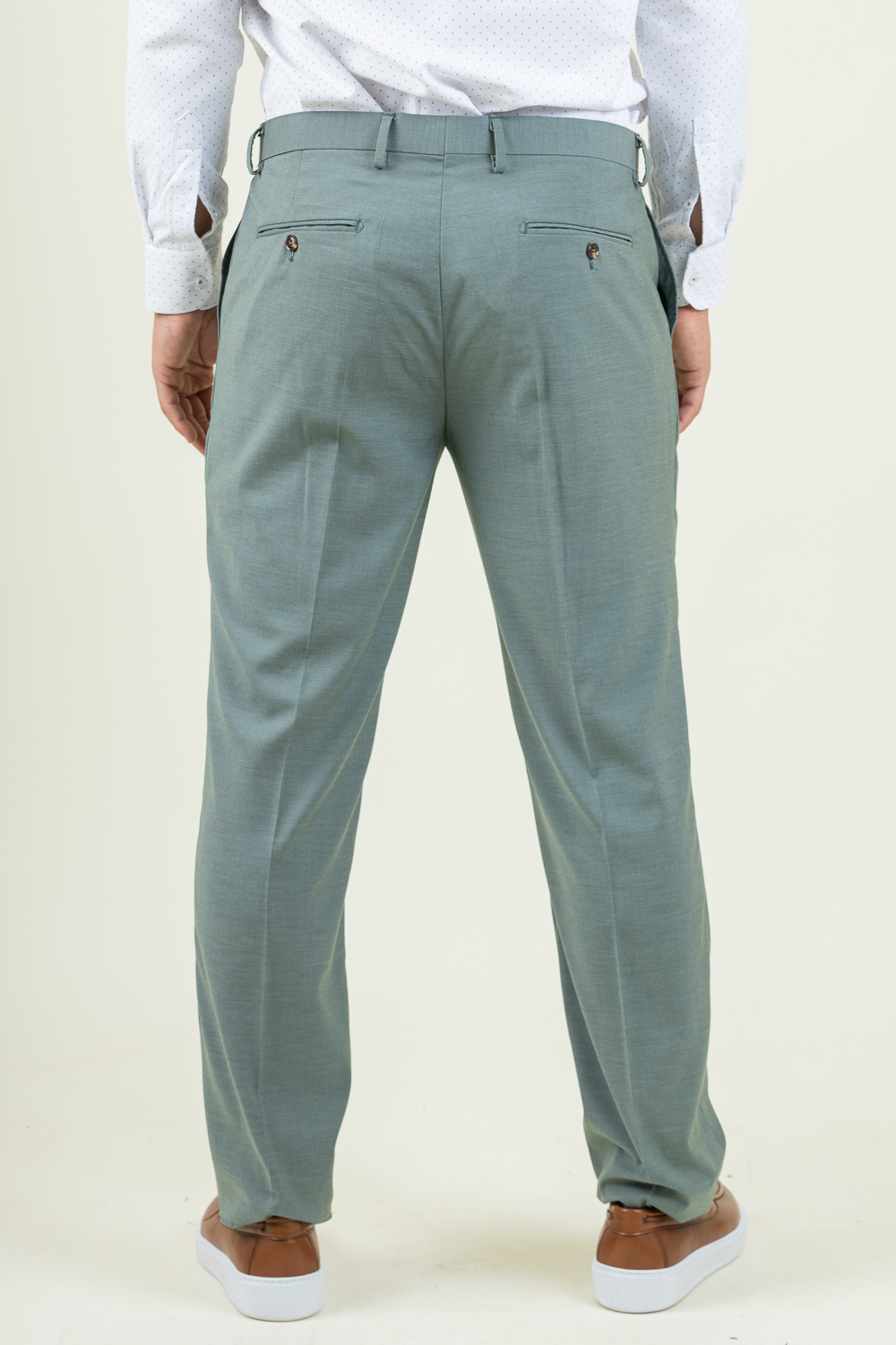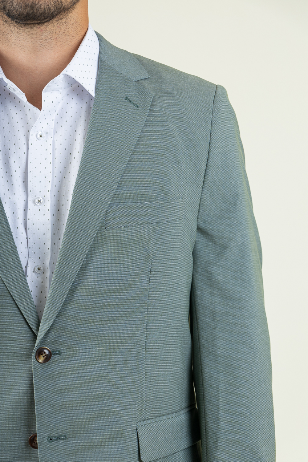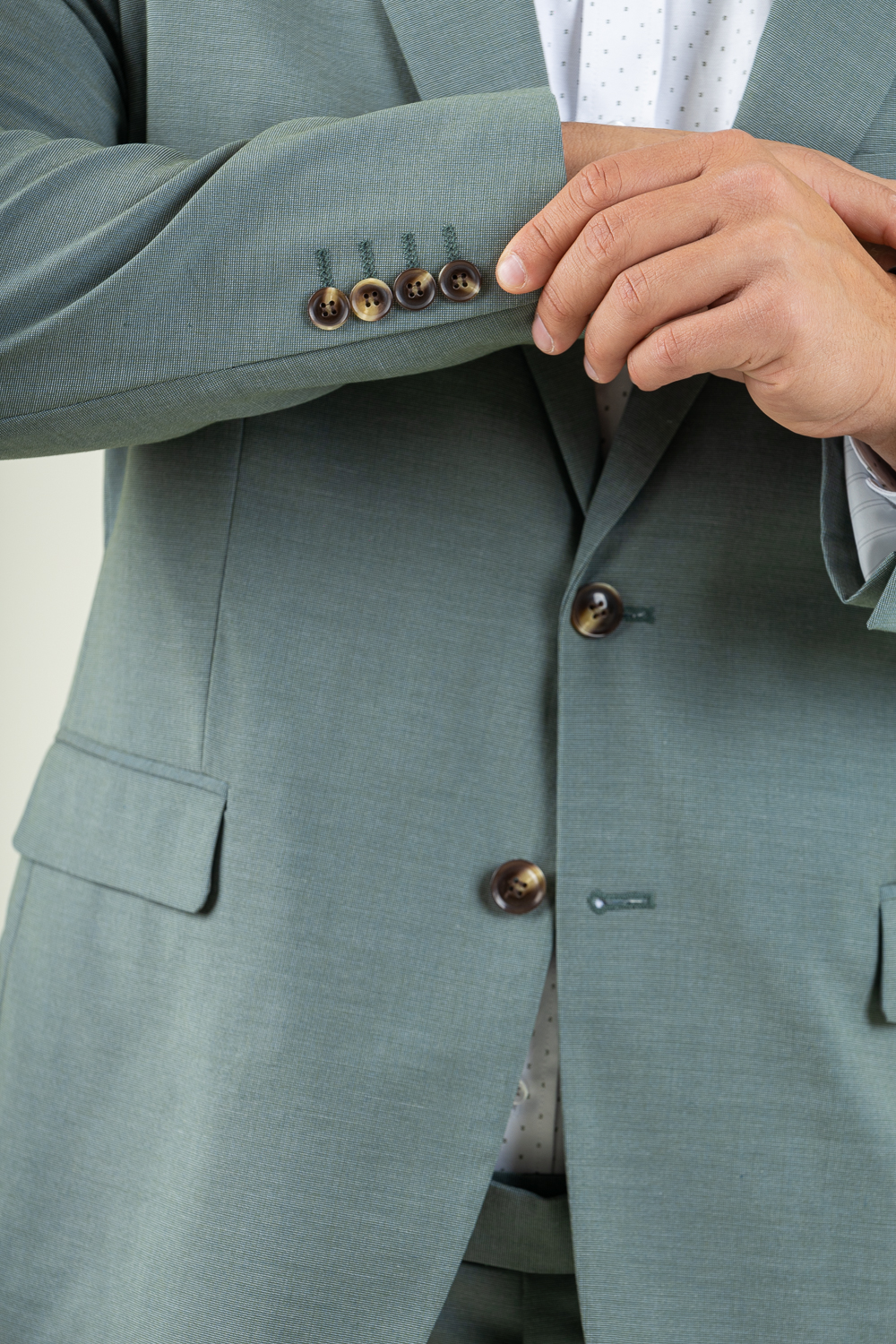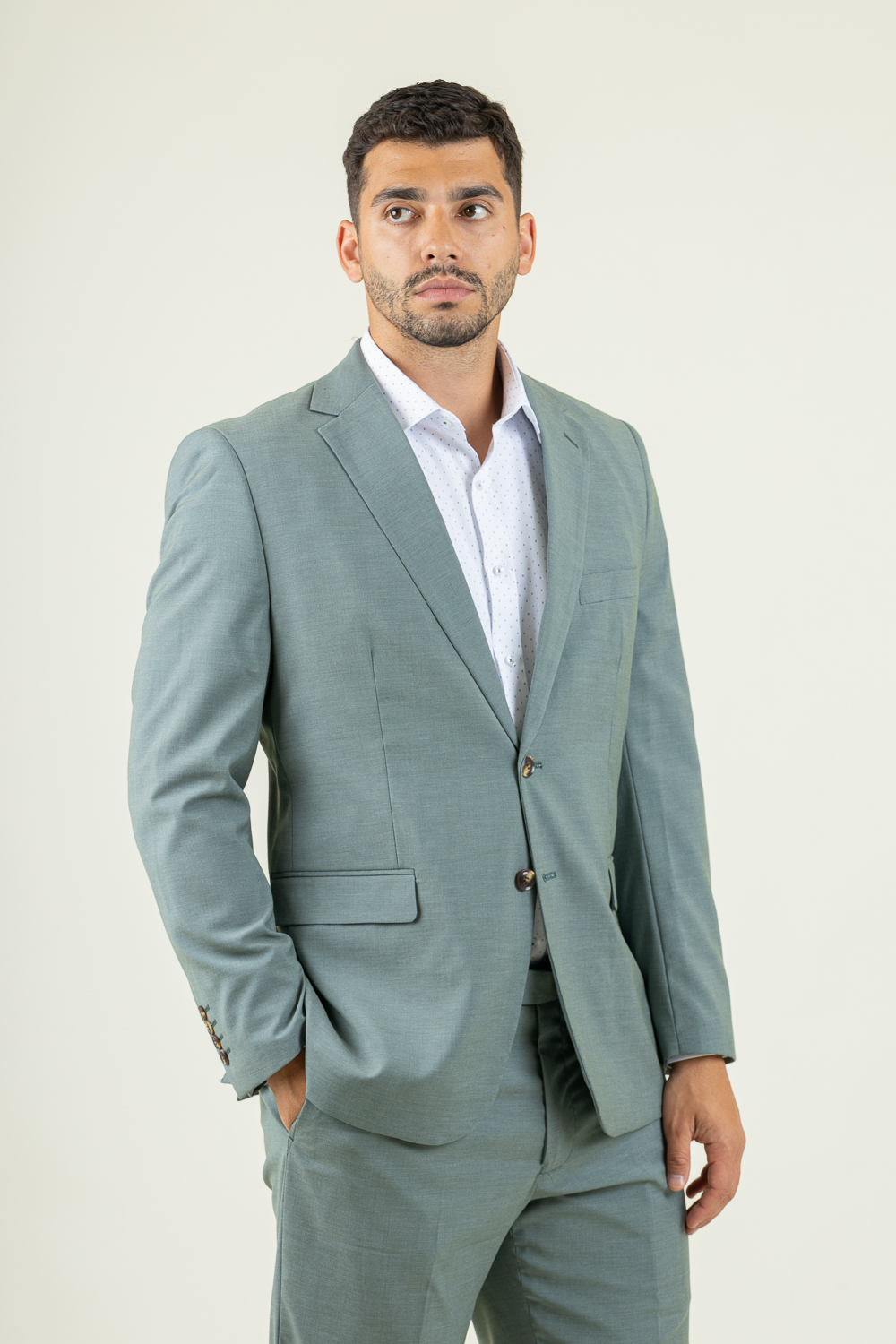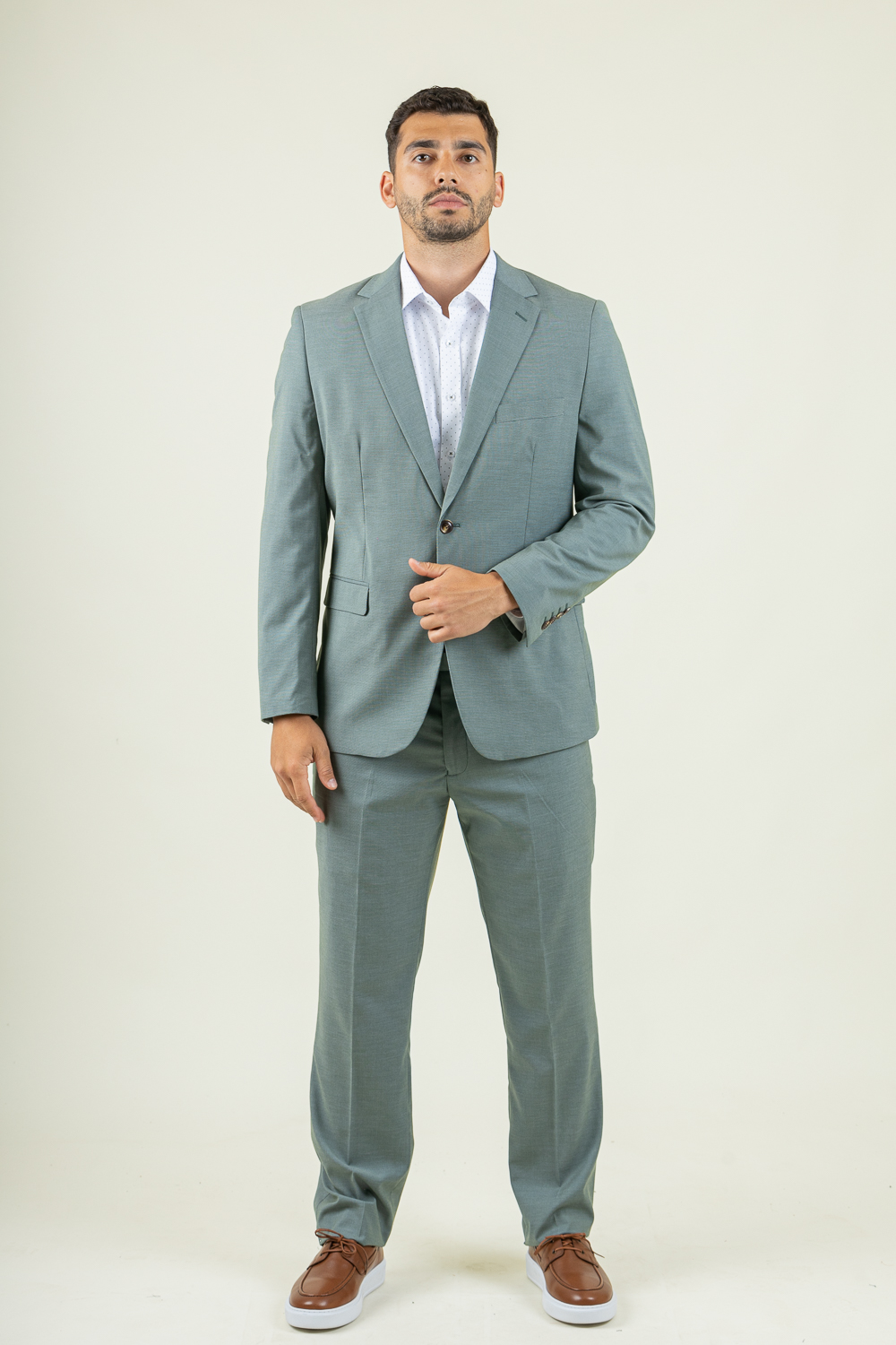 Δίκουμπο κοστούμι σε κανονική γραμμή. Φτιαγμένο από προηγμένο cool fabric νήμα, προσφέρει ανάλαφρη αίσθηση και ιδανικό αερισμό, ώστε να παραμένεις δροσερός και άνετος, ακόμα και σε υψηλές θερμοκρασίες. Ιδανικό για τις επίσημες εμφανίσεις σας καθώς με ένα πουκάμισο και τα κατάλληλα αξεσουάρ κάνει την παρουσία σας αισθητή. Το σακάκι έχει εξωτερικές τσέπες και κοψίματα από πίσω ενώ εσωτερικά είναι φοδραρισμένο και έχει εσωτερικές τσέπες. Το παντελόνι είναι πεντάτσεπο και κλείνει μπροστά με κουμπί και φερμουάρ. Σύνθεση 80% terylene – 18% rayon – 2% spandex. Το μοντέλο έχει ύψος 1,89 και 91 κιλά και φοραέι νούμερο 54.