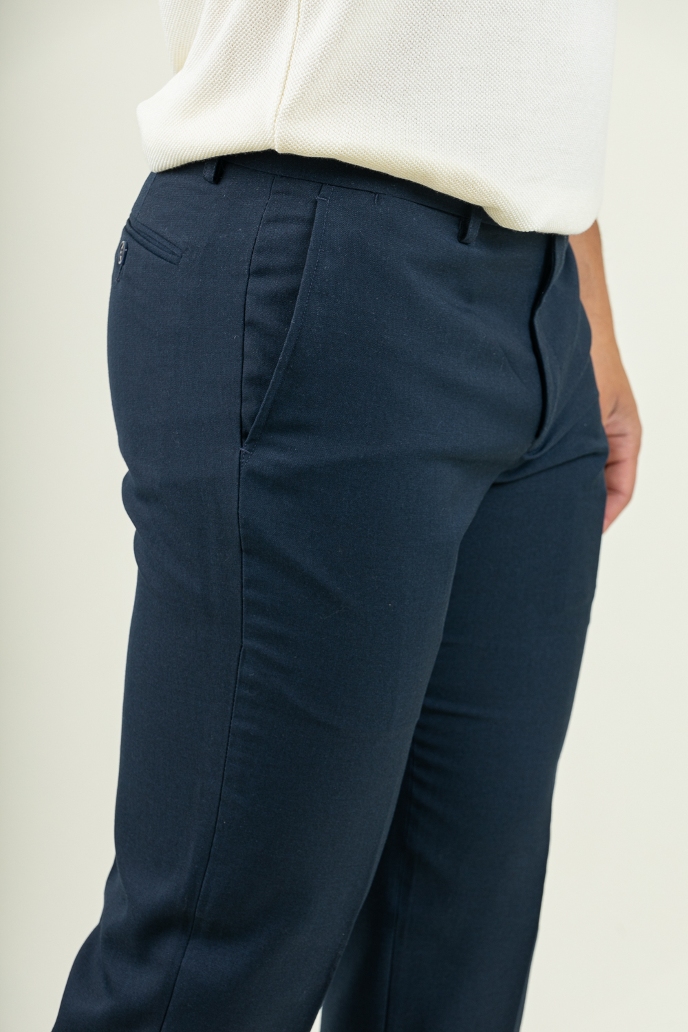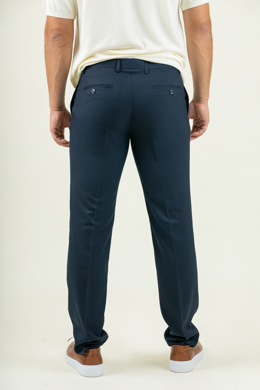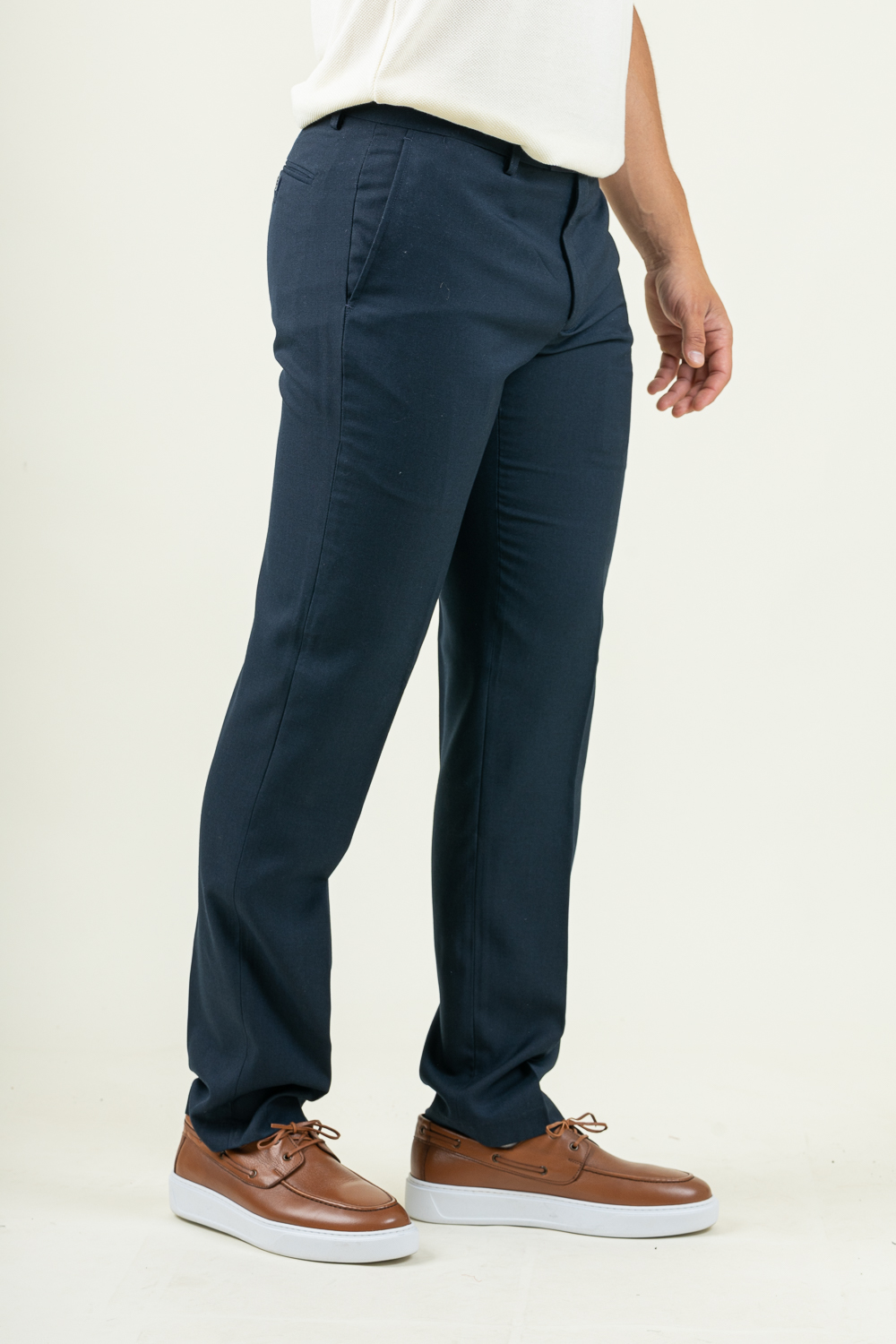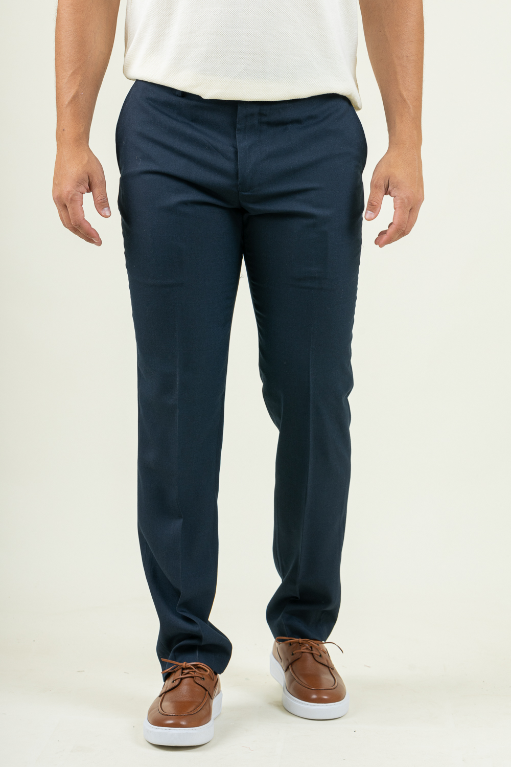 Υφασμάτινο παντελόνι σε slim γραμμή. Kατασκευασμένο από ανθεκτικό strech ύφασμα με απαλή υφή ,ένα δροσερό και άνετο παντελόνι που θα γίνει η απόλυτη επιλογή για τις καλοκαιρινές σας εμφανίσεις !. Σύνθεση 80% terylen – 18% rayon – 2% spandex . Το μοντέλο έχει ύψος 1,89 και 91 κιλά και φοραέι νούμερο 48.